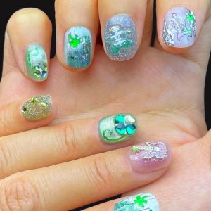 • Chrome Powder Application: Mirror-effect chrome powders are hand-rubbed onto cured gel acrylic with a silicone tool, creating a smooth, reflective metallic finish that shifts color with light and angle.